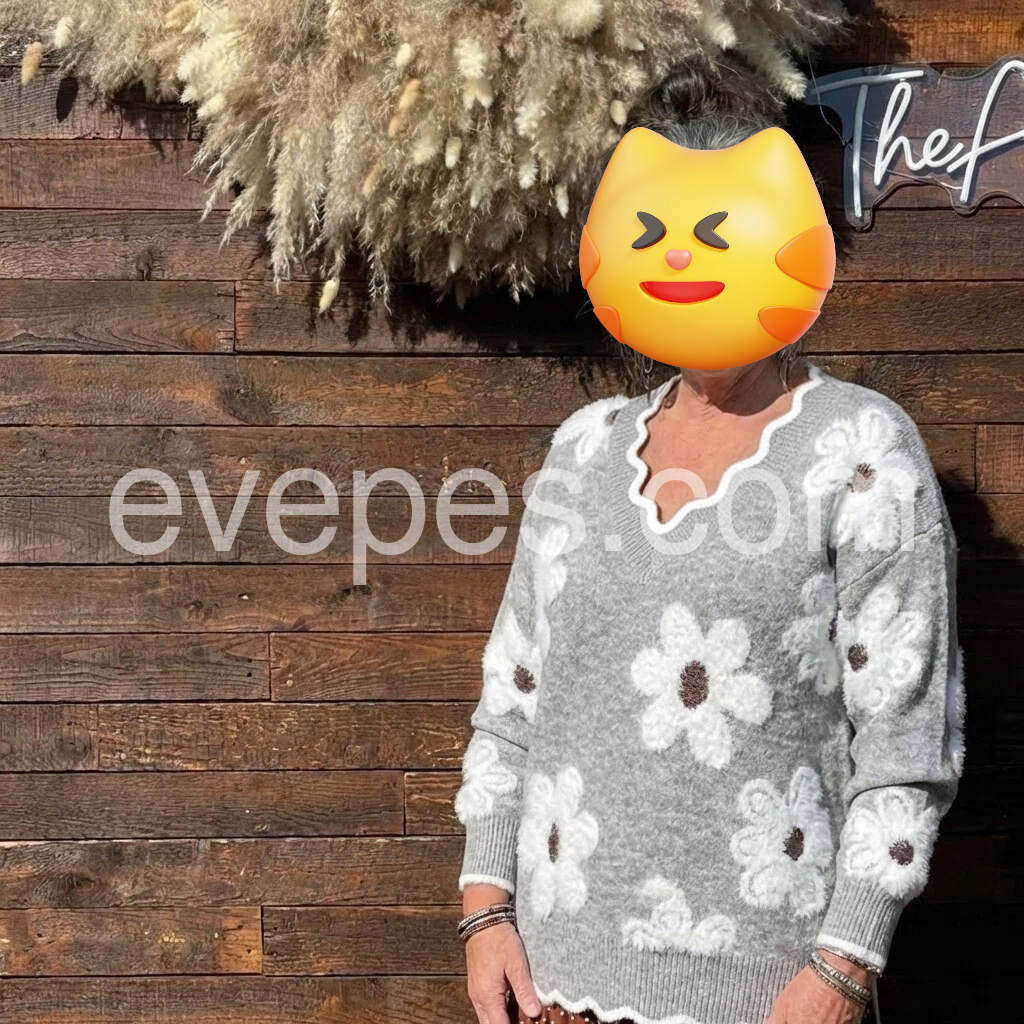 This Grey V-Neck Floral Print Sweater will keep you fashionably warm all season. With its classic v-neck design and floral print, this sweater has the perfect combination of style and comfort. Perfect for any occasion, this sweater is sure to keep you looking stylish.